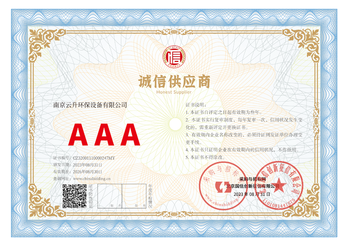 南京云升環(huán)保設(shè)備有限公司全體員工愿以環(huán)境保護(hù)為己任,以市場(chǎng)為導(dǎo)向,以優(yōu)質(zhì)服務(wù)為原則,嚴(yán)格的管理、先進(jìn)的生產(chǎn)工藝、至上的品質(zhì)、完善的售前售后服務(wù),與廣大新老用戶攜手并進(jìn),共鑄輝煌。公司已通過ISO9001:2000質(zhì)量管理體系標(biāo)準(zhǔn)認(rèn)證,成為江蘇省高新企業(yè),并進(jìn)行不斷的技術(shù)改進(jìn)和創(chuàng)新,為客戶和合作伙伴提供滿意的產(chǎn)品。